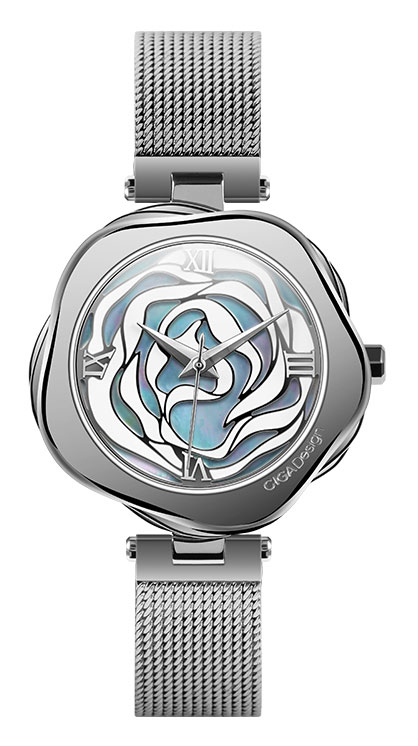 CIGA Design R Series Danish Rose R012-SISI-W3-SISI-W1 on kaunis luurankokello, joka on tanskalaisen muotoilijan Anders Ellegaardin käsialaa. Tämä ruususta inpiraationsa saanut kello on 32 mm leveä ja 7 mm paksu, ja runko on valmistettu hopeanvärisestä 316L kirurginteräksestä. Ruusua muistuttava taulu on yhdistetty hopeanväriseen teräsrannekkeeseen, jonka leveys kiinnityskohdasta on 12 mm. Koneistona kellossa on MYOTA GL36. Skeleton-kellotaulun suojana on safiirilasi, jonka läpi voit ihastella kellon koneiston toimintaa. Pakkaus sisältää myös yhteensopivan kaulakorun, jota koristaa Svarowskin kristalli. Kello kuuluu 3 ATM -vesitiiviysluokkaan eli se on roiskevesitiivis. CIGA Design -kelloille myönnetään yhden vuoden takuu, ja ne toimitetaan valmistajan alkuperäisissä pakkauksissa.