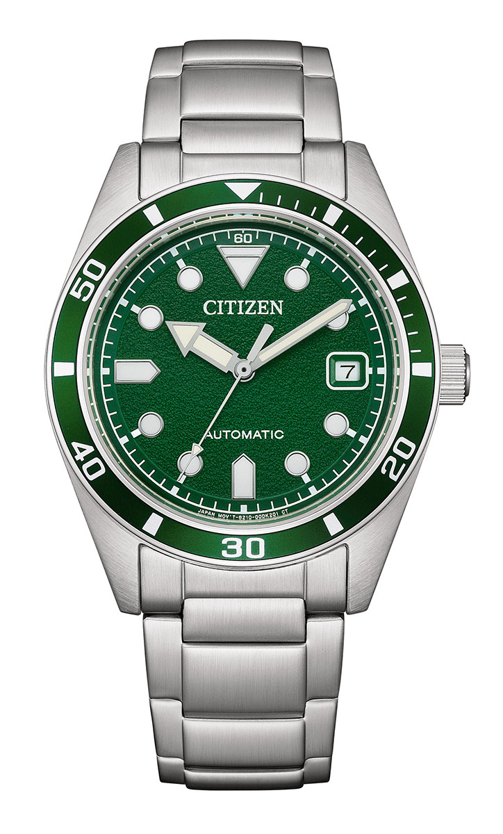 Kellon vihreä kellotaulu yhdistää viiva- ja pisteindeksit, jotka takaavat hyvän luettavuuden kaikissa tilanteissa. Sukeltajatyylinen ulkoasu korostuu selkeällä kehällä ja vahvoilla osoittimilla, jotka tekevät kellosta helposti luettavan myös liikkeessä.