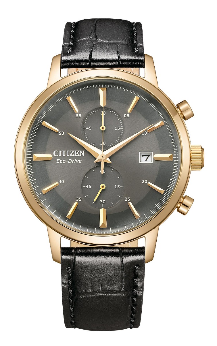 Citizen Eco-Drive Classic Chronograph CA7067-11H on elegantti puvunkello harmaalla kaksitauluisella kellotaululla ja kullanvärisillä tikari-indekseillä, jotka sopivat täydellisesti jokaiseen tilanteeseen. Kello on varustettu valosta virtansa ottavalla solar-koneistolla, jossa on 210 päivän käyntivara, ja ilmeen viimeistelee musta, krokotiilikuvioitu nahkaranneke. Citizen Eco-Drive Classic Chronograph CA7067-11H -kellolla on kolmen vuoden takuu.