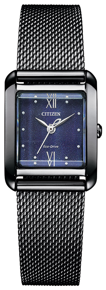 Citizen Eco-Drive EW5597-63L -kellossa on 21,5 mm leveä ja 7,5 mm paksu ruostumaton teräsrunko. Runkoon kiinnittyy tummanharmaa mesh-ranneke. Pakkauksen mukana toimitetaan sininen ECOPET®-nahkaranneke, joka on vastuullisesti valmistettu kierrätetyistä materiaaleista. Safiirilasin alla suojassa on sininen kellotaulu. Kellossa on B035-kaliiberin Eco-Drive-koneisto. Koneisto ottaa virtansa valosta ja kestää täyteen ladattuna jopa 210 päivää. Erillisiä paristoja ei siis tarvita. Kellon ominaisuuksiin kuuluu alhaisen varaustason hälytin ja ylilatauksen estotoiminto. Citizen EW5597-63L -kellon vesitiiviysluokka on 50m / 5atm eli se on rajoitetusti vesitiivis (uintia ei suositella). Citizen-kelloilla on kolmen vuoden takuu.