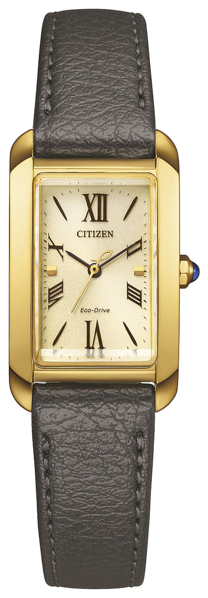 Citizen Eco-Drive EW5622-09P naisten rannekello on yhdistelmä tyyliä ja toimivuutta ajattomassa muotoilussa. Kullanvärisen kellotaulun ja tyylikkäiden roomalaisten indeksien ansiosta se on täydellinen kumppani mihin tahansa tilanteeseen. Laadukas ruostumattomasta teräksestä valmistettu runko ja nahkaranneke tarjoavat paitsi ylellisen ulkonäön, myös poikkeuksellisen pitkän käyttöiän. Kellon Eco-Drive-koneisto toimii aurinkoenergialla, ja sen tehoreservi on n. 7 kuukautta täyteen ladattuna. Ohut ja kevyt teräsrunko on leveydeltään vain 19 mm ja paksuudeltaan 7 mm. Naarmuuntumista estävä safiirilasi suojaa kellotaulua. Citizen Eco-Drive EW5622-09P kokonaispaino on 27 grammaa ja se kuuluu vesitiiviysluokkaan 50m / 5atm eli kello on rajoitetusti vesitiivis (uintia ei suositella).