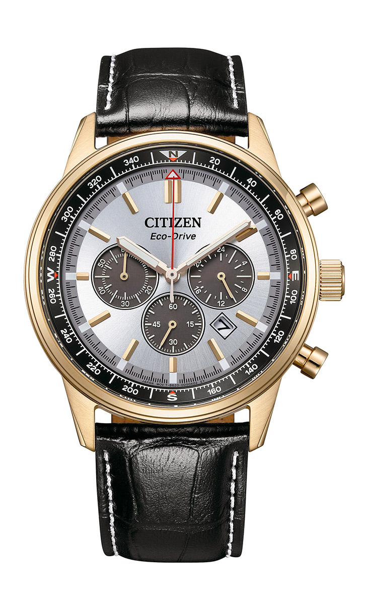 Citizen Eco-Drive Pilot Chrono CA4723-03A yhdistää klassisen kronografimuotoilun ja modernin teknologian tyylikkääksi kokonaisuudeksi. Ajaton ilme ja toiminnallisuus tekevät kellosta erinomaisen valinnan niin arkeen kuin siistimpään pukeutumiseen.
