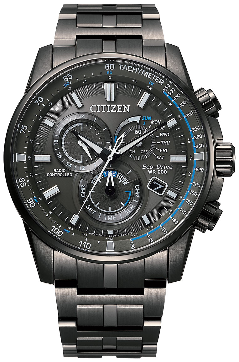 Citizen Eco-Drive Radio-Controlled CB5887-55H on tyylikäs miesten rannekello. Kellossa on ruostumattomasta teräksestä valmistettu 42,5 mm leveä ja 13 mm paksu runko. Kellon Eco-Drive toimii valon voimalla ja kello lataakin käyttöenergiansa ympärilläsi olevasta valosta ympäristöystävälliseen titaani-litium-ioni-akkuun. Ja vaikka valoa ei olisi aina saatavilla niin ei hätää. Kellon käyntivara ilman latausta on 300 päivää (pimeässä jopa 3 vuotta)! Kellon erikoisuus on sen radiokontrollointi. Radiokontrolloitu kello vastaanottaa aikasignaalin radiotaajuudella. Atomikellon tarkkuus on +-1 s. / 1 miljoonassa vuodessa. Käyttäjän kannalta tärkeintä on, että kello on aina sekunnilleen oikeassa. Myös päivämäärä on aina oikein ja kello siirtyy automaattisesti kesä- ja talviaikaan. Ominaisuuksia kellosta löytyy tämän kaiken lisäksi myös 24h näyttö, jatkuva kalenteri, hälytykset, maailmanaika sekä ajanotto. Citizen-kelloille myönnetään 2 vuoden takuu ja ne toimitetaan valmistajan alkuperäisessä pakkauksessa.