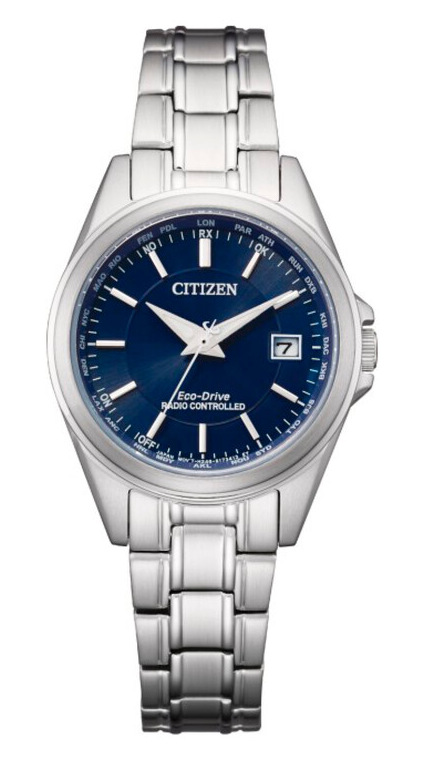 Naisten Citizen Eco-Drive Radio controlled EC1180-81L -kello on vaivaton ja kestävä teräskello. Radiokontrollin avulla kello pysyy aina ajassa riippumatta siitä mistä kellon käyttäjä itsensä löytää. Kellossa on tyylikäs 29 mm leveä täysteräksinen runko, ja radiokontrolloitu koneisto vastaanottaa aikasignaalin radiotaajuudella (atomikellon tarkkuus on +-1 s. / 1 miljoonassa vuodessa), joten se pysyy aina sekunnilleen oikeassa ajassa siirtyen myös automaattisesti kesä- ja talviaikaan. Tarkan aikansa lisäksi kellossa on valosta virtansa ottava H246-kaliberin eco-drive-koneisto, jonka käyntivara on täyteen ladattuna 180 päivää, joten virran loppumisesta tai paristonvaihdosta ei tarvitse huolehtia. Citizen-kelloilla on kahden vuoden takuu, jonka voit pidentää kolmeen vuoteen rekisteröimällä Citizen-kello -sivulla .
