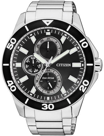 Citizen Eco-Drive AP4030-57E rannekello. Kellon rungon leveys 43mm ja rannekkeen 20mm. Kellossa päivyri, viikonpäivänäyttö sekä 24h näyttö. Citizen Eco-Drive- kellot toimivat valon voimalla ja lataavat käyntivirtaa ympäristöystävälliseen titaani-litium-ioni-akkuun. Yhden vuorokauden käyntiin tarvittava sähköenergia saadaan pitämällä kelloa pari minuuttia valossa. Citizen kelloille myönnetään 2 vuoden takuu ja ne toimitetaan valmistajan alkuperäisessä rasiassa.