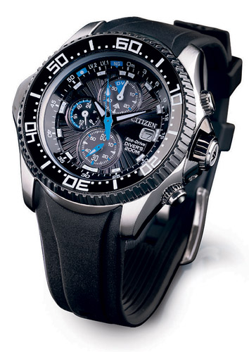Citizen Promaster Aqualand BJ2111-08E sukeltajan rannekello. Kellon rungon leveys 47mm ja rannekkeen 20mm. Kellossa syvyysmittari, max. syvyyden muisti, päivyri, ajanotto, kierrelukittu nuppi sekä kierrettävä muistirengas. vesitiiveys 200m. Citizen Eco-Drive- kellot toimivat valon voimalla ja lataavat käyntivirtaa ympäristöystävälliseen titaani-litium-ioni-akkuun. Yhden vuorokauden käyntiin tarvittava sähköenergia saadaan pitämällä kelloa pari minuuttia valossa. Citizen kelloille myönnetään 2 vuoden takuu ja ne toimitetaan valmistajan alkuperäisessä rasiassa.