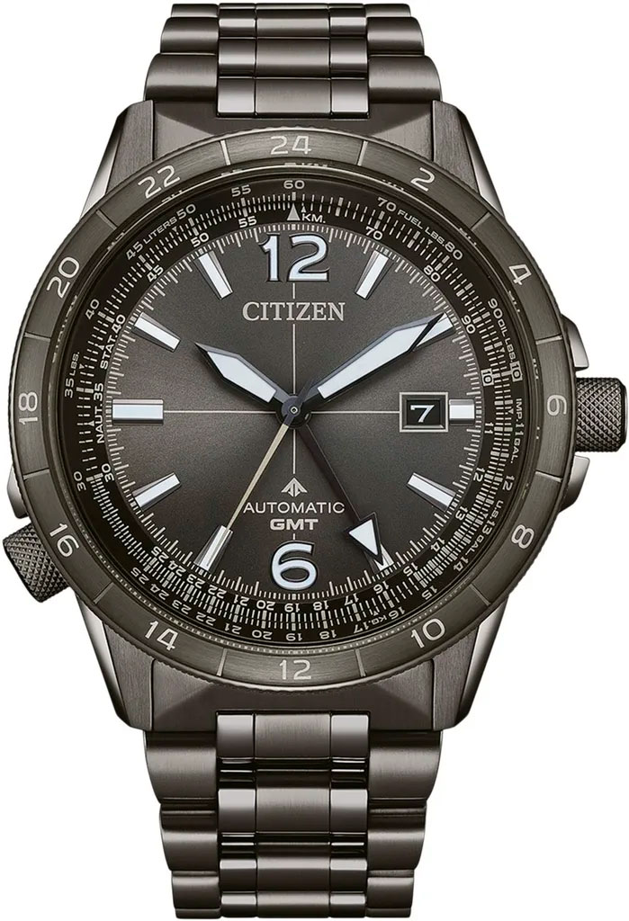 Citizen Promaster SKY Automatic NB6045-51H on Citizen SKY-sarjan ensimmäinen GMT-malli. Tämä mekaaninen lentäjänkello on saanut inspiraationsa ilmailun edistyksellisestä teknologiasta ja se on täynnä innovatiivisia yksityiskohtia. Kellon runko ja ranneke on valmistettu ruostumattomasta teräksestä ja parannettu magneettivastus estää digitaalisten laitteiden negatiivisen vaikutuksen kellon tarkkuuteen yli 1 senttimetrin etäisyydellä. Mustan kellotaulun päällä on heijastamaton safiirilasi. Kellotaulussa on päivyri, isot luminoidut viisarit ja indeksit sekä GMT-viisari, jolla voit asettaa kellon toisen aikavyöhykkeen aikaan. Runko on leveydeltään 44,5 mm ja paksuudeltaan 12,67 mm. Rannekkeen leveys kiinnityskohdasta on 22 mm. Kellon kokonaispaino on 177 grammaa. Ruuvattavan kruunun ansiosta kellossa on erinomainen vesitiiviys; 200m / 20atm, joten se soveltuu uintiin ja laitesukellukseen.
