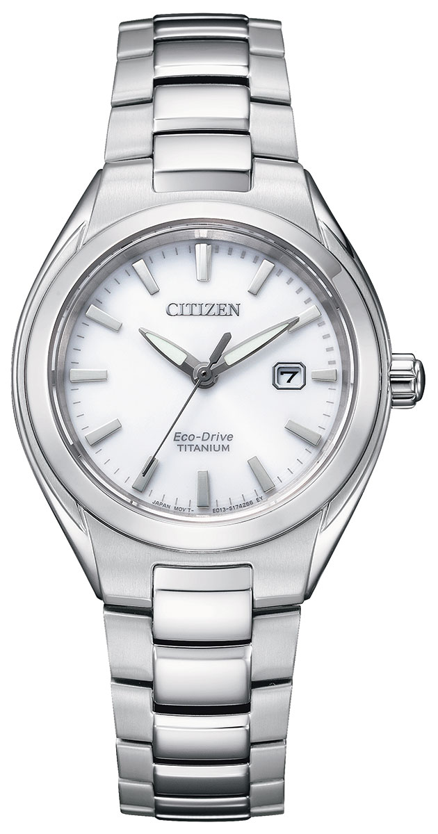 Citizen Super Titanium Ladies EW2610-80A on klassisen tyylikäs naisten rannekello, jossa on E013-kaliiberin Eco-Drive-koneisto. Koneisto ottaa virtansa valosta ja kestää täyteen ladattuna jopa 180 päivää. Erillisiä paristoja ei siis tarvita. Kellossa on 31 mm leveä Super Titanium™ -runko, joka on yli viisi kertaa kovempi kuin teräsrunko. Rannekkeena tässä mallissa on hopeanvärinen Super Titanium™ -ranneke. Safiirilasin alla suojassa on valkoinen kellotaulu. Kellon ominaisuuksiin kuuluu päivyri. Citizen EW2610-80A kuuluu vesitiiviysluokkaan 100m / 10atm eli se on vesitiivis. Soveltuu pintauintikäyttöön ja snorkkelisukellukseen, ei laitesukellukseen. Citizen-kelloille myönnetään 3 vuoden takuu ja ne toimitetaan valmistajan alkuperäisessä pakkauksessa.