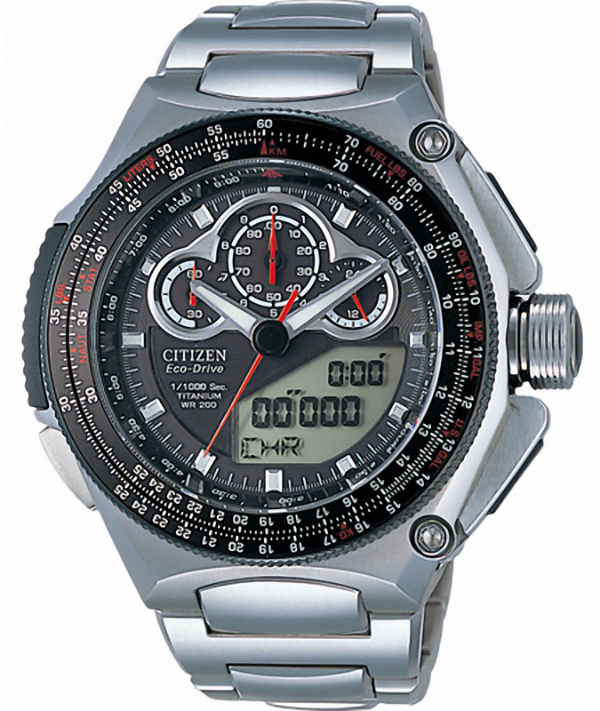 Citizen Titanium Promaste SuperChronograph JW0071-58E. Kellon rungon leveys 52mm ja rannekkeen 20mm. Kellossa hälytys, 24h näyttö, ikuinenkalenteri, taustavalo, ajanotto (1/1000sek), 20 kierroksen muisti, ajastin, energiansäästötoiminto sekä maailmanaika.vesitiiveys 200m. Citizen Eco-Drive- kellot toimivat valon voimalla ja lataavat käyntivirtaa ympäristöystävälliseen titaani-litium-ioni-akkuun. Yhden vuorokauden käyntiin tarvittava sähköenergia saadaan pitämällä kelloa pari minuuttia valossa. Citizen kelloille myönnetään 2 vuoden takuu ja ne toimitetaan valmistajan alkuperäisessä rasiassa.