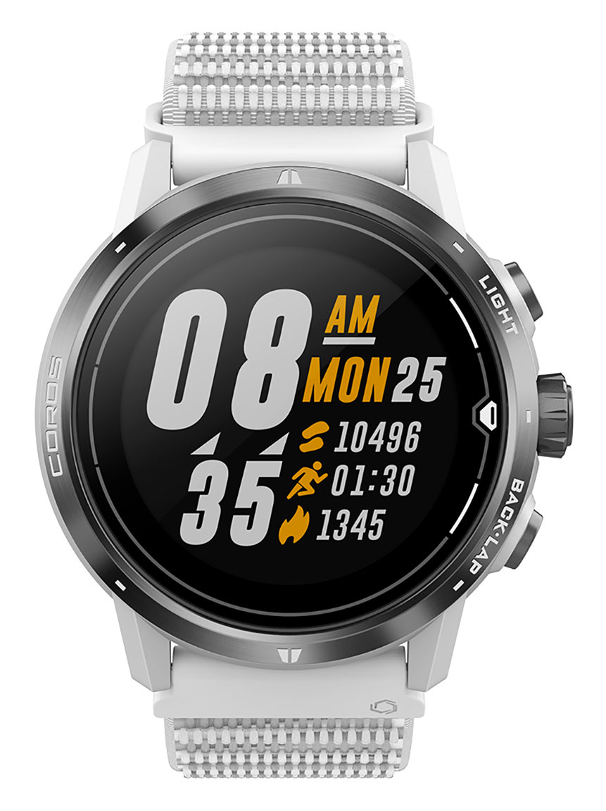COROS APEX Pro WAPXP-WHT on valmistettu laadukkaista materiaaleista. Kellossa on 47 mm leveä alumiinirunko, titaaninen bezel sekä naarmuuntumaton safiirilasi. Tekstiilirannekkeen leveys kiinnityskohdasta on 22 mm. Digitaalisen kellokehän vuoksi kellon hallinta on entistäkin helpompaa. Voit selata valikkoja läpi jopa hanskat kädessäsi, riittää, kun pyyhkäiset sormellasi kehästä ylös tai alas. Lisäksi kellosta löytyy nyt myös kosketusnäyttö.