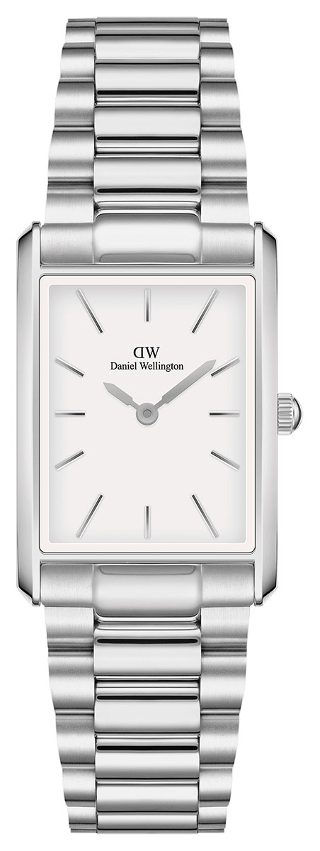 Daniel Wellington Bound DW00100700 rannekellon kaareva suorakaiteen muotoinen runko myötäilee saumattomasti hopeanvärisen teräsrannekkeen leveyttä. Hopeanvärisen rungon pituus on 32 mm ja leveys 22 mm. Kellotaulua suojaa kestävä mineraalilasi, ja runko ja ranneke on kirurginterästä. Kello kuuluu vesitiiviysluokkaan 30 m / 3 atm, eli se on roiskevesitiivis.