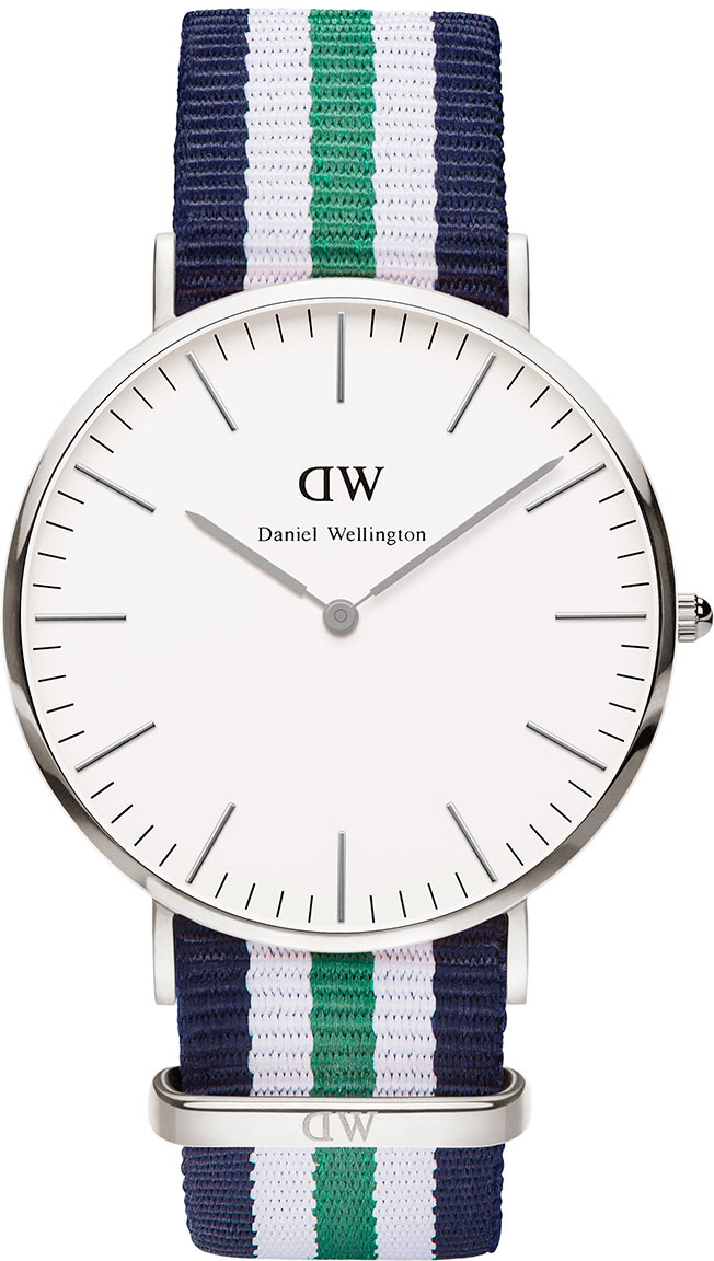 Miesten Daniel Wellington Classic Nottingham 0208DW rannekello värikkäällä kangasrannekkeella ja teräksen värisellä rungolla. Kellon rungon leveys on 40mm ja paksuus vain 6mm, joten kelloa on todela miellyttävä pitää ranteessa. Pehmeän kangasrannekkeen leveys on 20mm. Daniel Wellington kellot toimitetaan valmistajan alkuperäisessä rasiassa ja niille myönnetään 2 vuoden takuu.