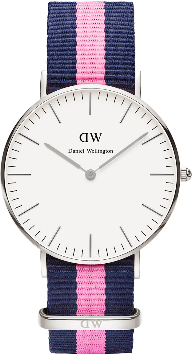 Naisten tyylikäs Daniel Wellington Classic Winchester Lady 0604DW rannekello kangasrannekkeella ja hopean värisellä rungolla. Kellon ruostumattomasta teräksestä valmistetun rungon leveys on 36mm ja paksuus vain 6mm, joten se on todella ohut ja mukava pitää ranteessa. Kangasrannekkeen leveys on 18mm. Daniel Wellington kellot toimitetaan valmistajan alkuperäisessä rasiassa ja niille myönnetään 2 vuoden takuu.