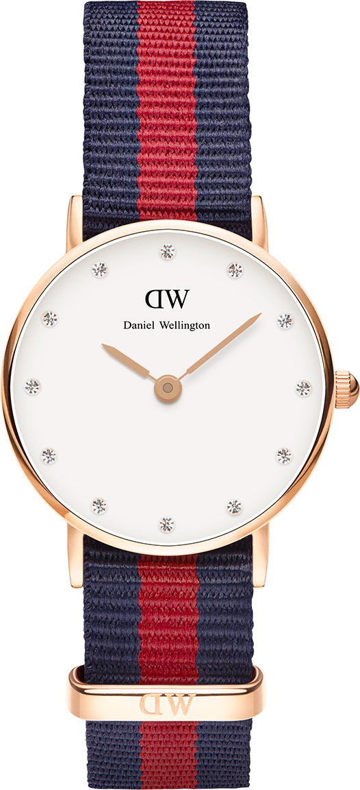 Naisten tyylikäs Daniel Wellington Classy Oxford 0905DW rannekello kangasrannekkeella ja punakulla värisellä rungolla. Kellon ruostumattomasta teräksestä valmistetun rungon leveys on 26mm ja paksuus vain 6mm, joten se on todella ohut ja mukava pitää ranteessa. Kangasrannekkeen leveys on 14mm. Daniel Wellington kellot toimitetaan valmistajan alkuperäisessä rasiassa ja niille myönnetään 2 vuoden takuu.