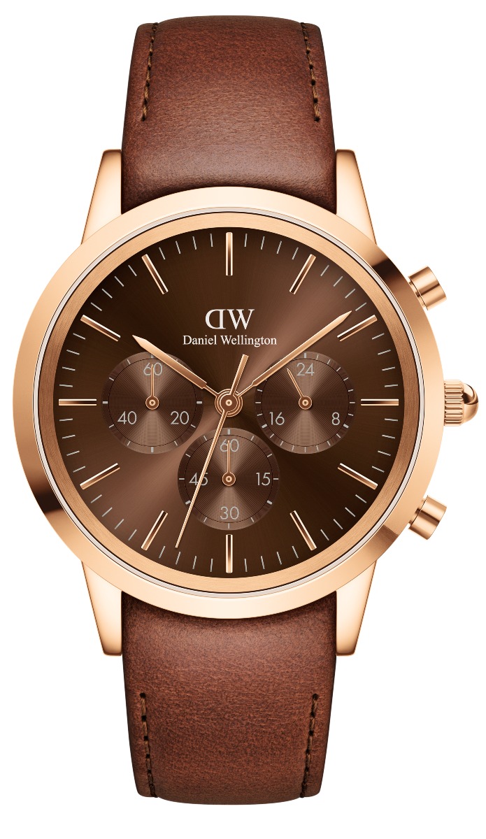 Daniel Wellington Iconic Chronograph 42 St Mawes RG Amber sunray DW00100640 perustuu Daniel Wellington Iconic Link -perheeseen. Kellon halkaisija on 42 mm, mikä on suurin Iconic-kello tähän mennessä. Hieman suuremmasta rungosta huolimatta, tämä kronografikello on hyvin sopusuhtainen, ja ilmeeltään klassinen, ja kolme alataulua antaa sille urheilullisen vaikutelman. Kronografi-ominaisuus tekee tästä kellosta äärimmäisen ajanottajan. Daniel Wellington Iconic Chronograph 42 St Mawes RG Amber sunray DW00100640 kronografikellossa on myös 24 tunnin kello erillisessä alataulussa. Aidolla ruusukullalla pinnoitettu 316L-kirurginteräsrunko on yhdistetty nahkarannekkeeseen, joka on varustettu pikalukitettavalla jousijärjestelmällä, mikä helpottaa rannekkeen käsittelyä ja vaihtoa. Näyttävä väriyhdistelmä viimeistelee ilmeen, ja tekee tästä kellosta selkeän ykkösasusteen päivittäiseen käyttöön. Daniel Wellington -kelloilla on kahden vuoden takuu, ja ne toimitetaan valmistajan alkuperäisessä rasiassa.