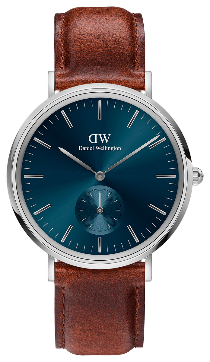 Daniel Wellington Multi-eye DW00100709 on uusi ja parempi versio DW Classic-mallista, sillä sen sinisessä kellotaulussa on pienempi alataulu, jonka avulla voit seurata sekunteja. Hopeanvärisen rungon leveys on 40 mm ja siinä on vaihdettava ruskea nahkaranneke. Kellotaulua suojaa kestävä mineraalilasi. Runko on kirurginterästä. Kello kuuluu vesitiiviysluokkaan 30 m / 3 atm, eli se on roiskevesitiivis.