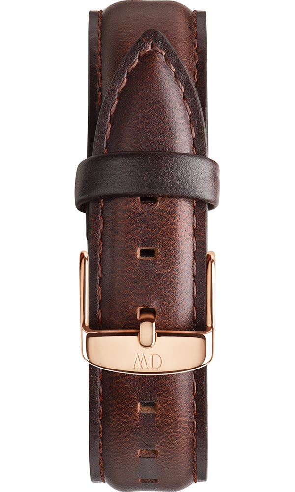 Ruskea nahkaranneke naisten Daniel wellington rannekelloon. Rannekkeen leveys 18mm.