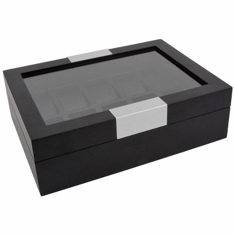 Davidts musta puu/musta keinonahka 02200510100 kymmenen kellon kellolaatikko on tyylikkään klassinen rasia arvokellojen säilytykseen. Tämä täyspuinen rasia on leveydeltään 31,5 cm, ja sen sen sisäpinta on pinnoitettu mustalla tyylikkäällä keinonahalla, joka suojaa kelloja naarmuuntumiselta sekä pitää rannekkeet oikeassa muodossaan. Ikkunasta on helppo katsoa mitkä kellot rasiasta löytyy, ja laatikko istuu täydellisesti myös pukeutumishuoneen hyllylle tai lipaston laatikkoon muiden asusteiden kanssa, mikä helpottaa pukeutumista.