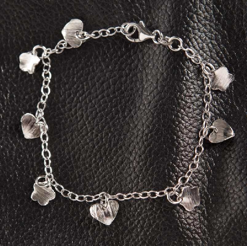 DFJ Collectionin hopeinen kukka/sydänrannekoru. Hopearannekorun pituus on 19 cm.