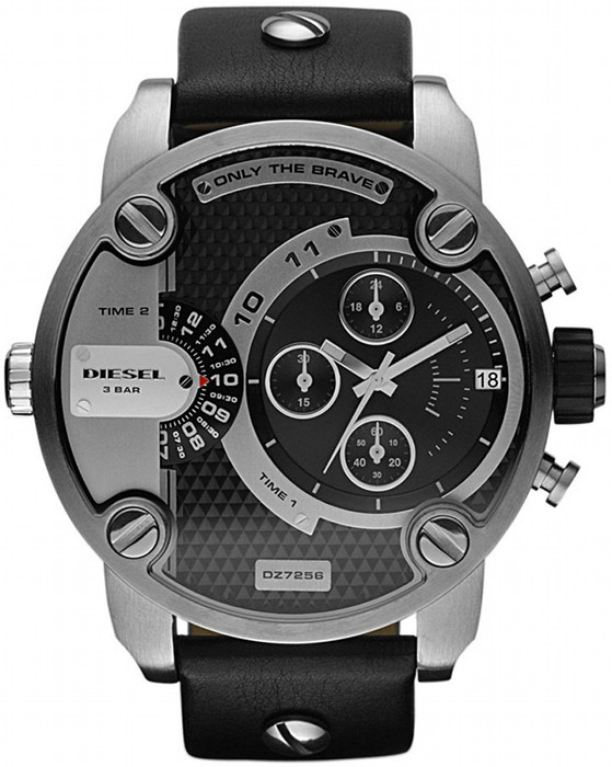 Diesel DZ7256 Little Daddykello on hieman pienempi kuin sen isoveli, eli Diesel Mr. Daddy, ja se sopiikin paremmin useampiin ranteisiin. Tämä ei tarkoita kuitenkaan sitä, että kello olisi pieni. Sen runko on leveydeltään 51mm, ja nuppien kanssa 60mm. Rannekkeen leveys on 24mm.Kello voidaan asettaa käymään kahden eri aikavyöhykkeen aikaa yhtäaikaisesti sillä kellossa on 2erillistä koneistoa! Se sopii siis matkamiehen ranteeseen kuin nakutettu. Siitä löytyy myös ajanotto sekä päivyri. Diesel kelloille myönnetään 2 vuoden takuu. Tuote toimitetaan valmistajan alkuperäisessä rasiassa.