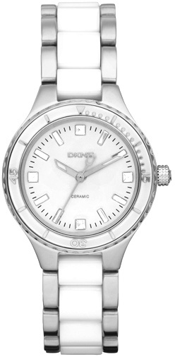 Naisten DKNY keraaminen NY8498 rannekello. Kellon runko on leveydeltään 32mm ja ranneke 16mm. Kellon rannekkeen valkoiset palat ovat naarmuuntumatonta keramiikkaa. DKNY kelloilla on kahden vuoden takuu ja ne toimitetaan valmistajan alkuperäisessä rasiassa postikuluitta!