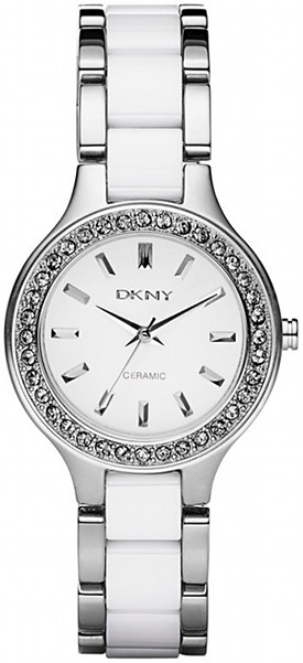 Naisten DKNY keraaminen NY8139 rannekello. Kellon runko on leveydeltään 30mm ja ranneke 14mm. Kellon rannekkeen valkoiset palat ovat naarmuuntumatonta keramiikkaa. DKNY kelloilla on kahden vuoden takuu ja ne toimitetaan valmistajan alkuperäisessä rasiassa postikuluitta!