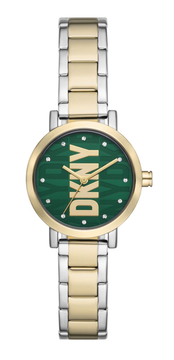 Kuuluisasta New Yorkin taiteilijakaupunginosasta inspiraationsa saanut Donna Karan DKNY Midi Soho two-tone green NY6676 -rannekellossa on monogrammikuviointi taulussa ja rannekkeessa risteilee kiiltävä ja harjattu hopean- ja kullanvärinen teräs. Kellon rungon halkaisija on 28 mm ja rannekkeen leveys 12 mm. Ilmeen viimeistelee vihreä kellotaulu, joka on täydellinen valinta jokaiseen asuun. DKNY-kellot ovat saaneet inspiraationsa New Yorkin kaupungin sykkeestä, ja kellot ovat urbaaneja, itsevarmoja ja klassisia. DKNY-kelloilla on 2 vuoden takuu, ja ne toimitetaan valmistajan alkuperäisessä rasiassa.