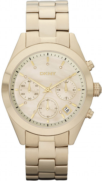 DKNY Chronograph NY8514 naisten rannekello. Rungon leveys 38mm ja rannekkeen 18mm. Ominaisuuksina ajanotto, 24h näyttö sekä päivyri. Kellossa kullanhohtoinen helmiäiskellotaulu. DKNY kelloille kahden vuoden takuu ja ne toimitetaan valmistajan alkuperäisessä rasiassa postikuluitta!