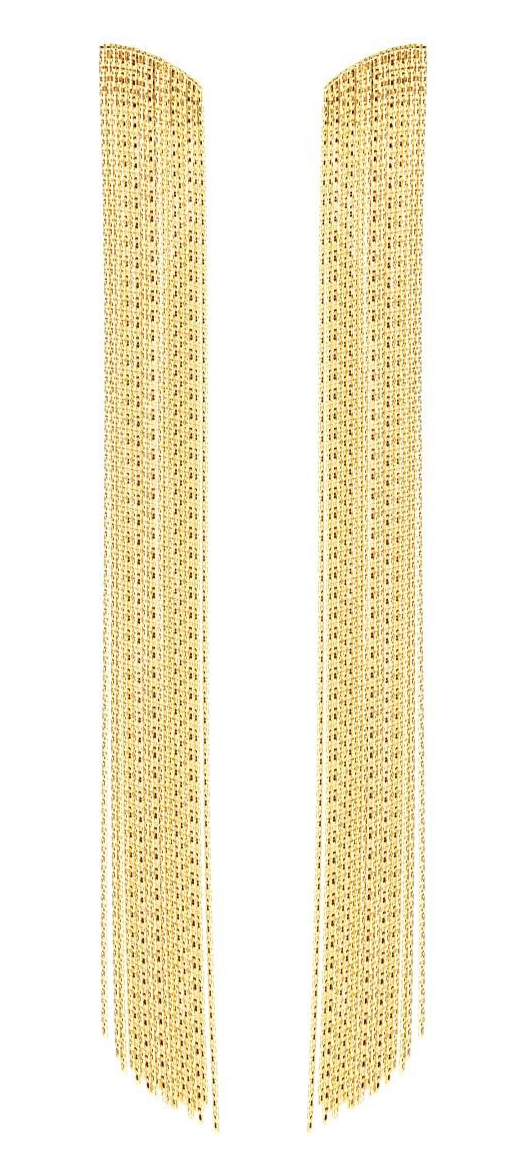Elysian hapsukorvakoruissa 126644 kimaltaa useat ohet ketjut luoden kauniin kimaltavan pinnan. Pitkien korvakorujen pinta on viimeistelty 14 karaatin kullalla. Pituus: 80 mm.