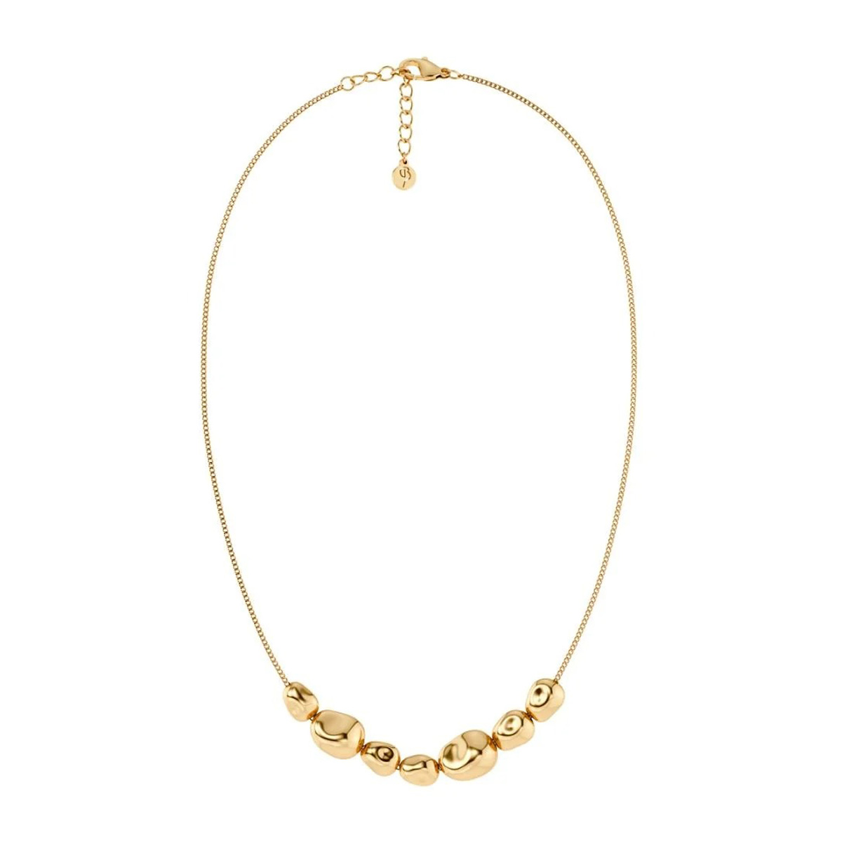 Edblad Leora 130271 kaulakorun selkeä muotoilu tuo asukokonaisuuksiin hienostuneen ilmeen ja tekee korusta helposti käytettävän niin arkena että juhlatilaisuuksissa. Leora-mallisto on saanut inspiraationsa meren siloittamista rantakivistä ja kaulakorun eri kokoisien kivien läpi kulkee laadukas fasettihiottu panssariketju. Kaulakorun materiaalina on käytetty ruostumatonta terästä 14 karaatin kultauksella. Koko 9–13 mm ja kaulakorun säädettävä pituus 42–45 cm. Nikkeliturvallinen ja vedenkestävä.