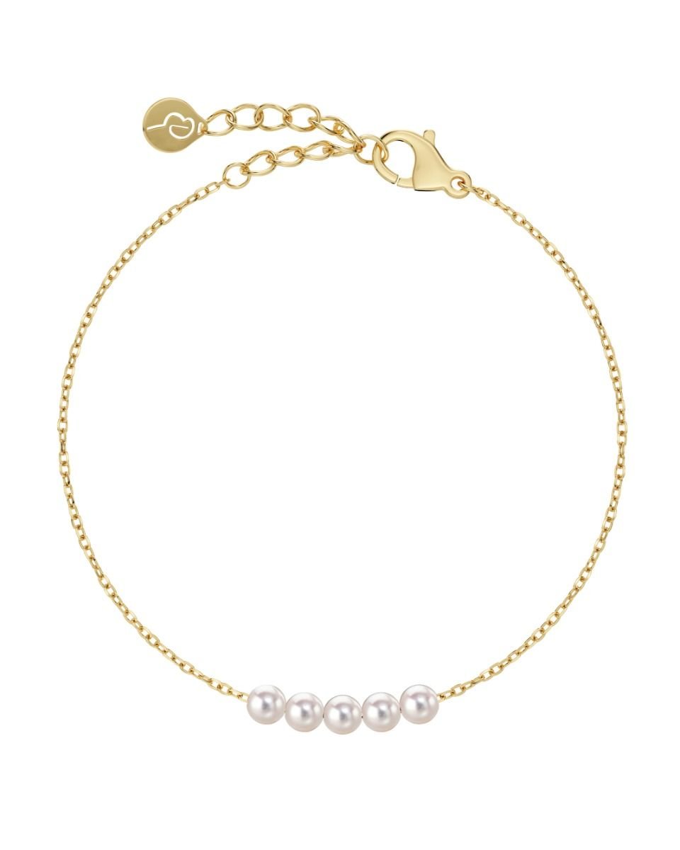 Edblad Pearly rannekorua Gold 127469 koristaa pyöreät 3 mm leveät makeanvedenhelmet ohuessa, 14-karaatin kullatussa ankkuriketjussa. Kullanvärisen helmirannekorun pituus on säädettävissä välille 15,5-18,8 cm.