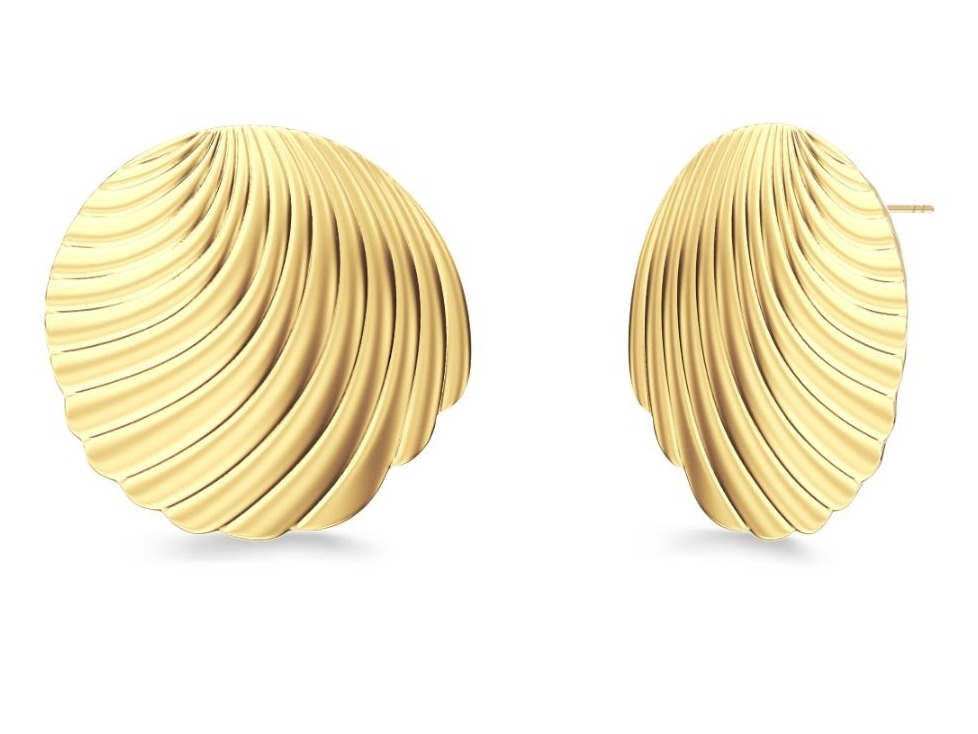 Kullanväriset Edblad Shelli tappikorvakorut L 126943 muistuttavat ilmeeltään näkinkenkää. Nämä 26 mm leveät korvakorut on pinnoitettu aidolla 14-karaatin kullalla.