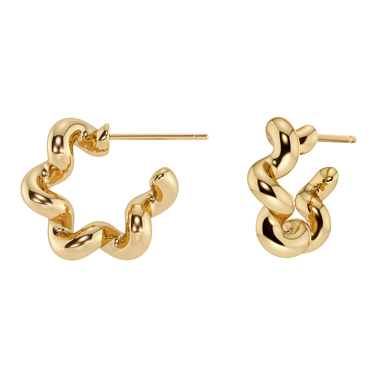 Spiral-korvakorut on valmistettu kestävästä ruostumattomasta teräksestä ja viimeistelty kiiltävällä 14k kultapinnoitteella. Ne on suunniteltu säilyttämään kauniin pintansa aktiivisessa käytössä; korvakorut ovat nikkeliturvalliset ja vedenpitävät. Halkaisija 15 mm.