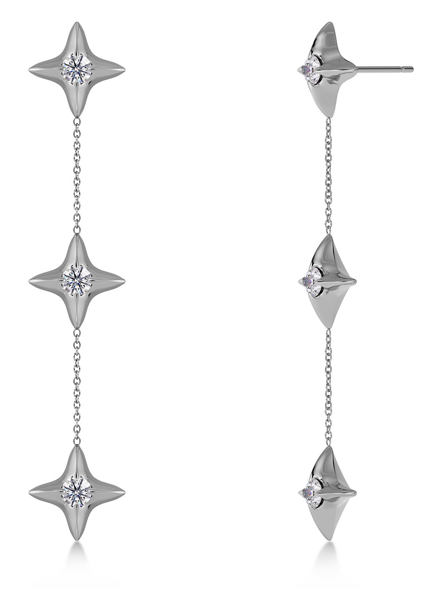 Edblad Stellar 129739 pitkissä korvakoruissa on koruina kolme kaunista tähteä, joiden sisällä on kirkas zirkonia tuomassa lisähohtoa. Kiiltävästä ruostumattomasta teräksestä valmistetut pitkät korvakorut ovat näyttävät korut minkä tahansa asusteen kanssa. Nikkelivapaat ja vedenpitävät. Koko: 10 x 10 mm ja pituus 6 cm.