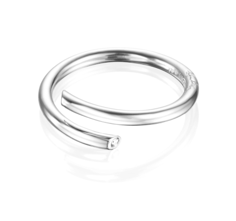 Efva Attling Hug rannekoru 13-100-01600/1700 kiertyy kuin rakkaan halaus sormesi ympärille. Koru on valmistettu sterling-hopeasta, ja sen päätä koristaa 0,01 karaatin briljanttihiottu timantti. Sormuksen paksuus on 2,5 mm. Efva Attling-korut toimitetaan valmistajan alkuperäisessä rasiassa.
