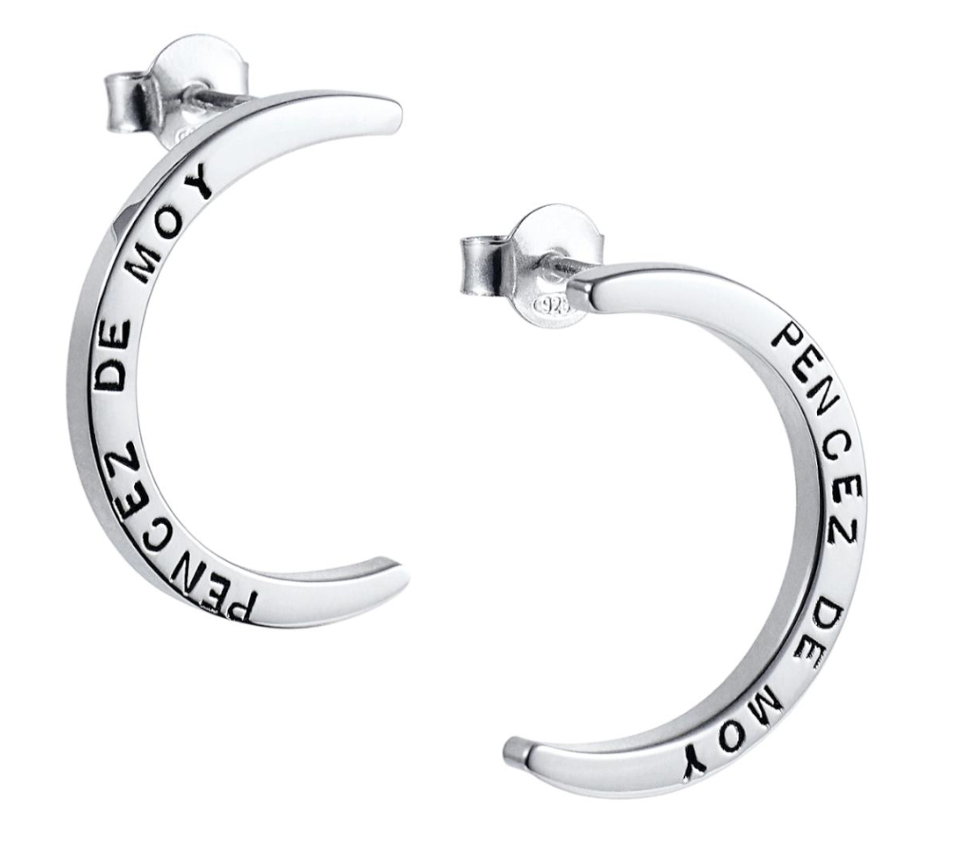 Efva Attling Pencez Moon korvakoruihin 12-100-02078/0000 on kaiverrettu muinaisranskaksi Pencez De Moy, Ajattele minua. Korvakorujen koko on 16 x 22 mm. Efva Attling -korut toimitetaan valmistajan alkuperäisessä rasiassa.