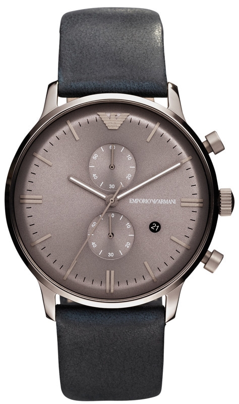Tyylikäs miesten Emporio Armani AR0388. Kellon rungon leveys on 43mm ja rannekkeen leveys 22mm. Kello on tumman harmaa. Kellossa ajanotto sekä päivyri. Armani kelloille myönnetään kahden vuoden takuu. Toimitetaan valmistajan alkuperäisessä rasiassa postikuluitta!