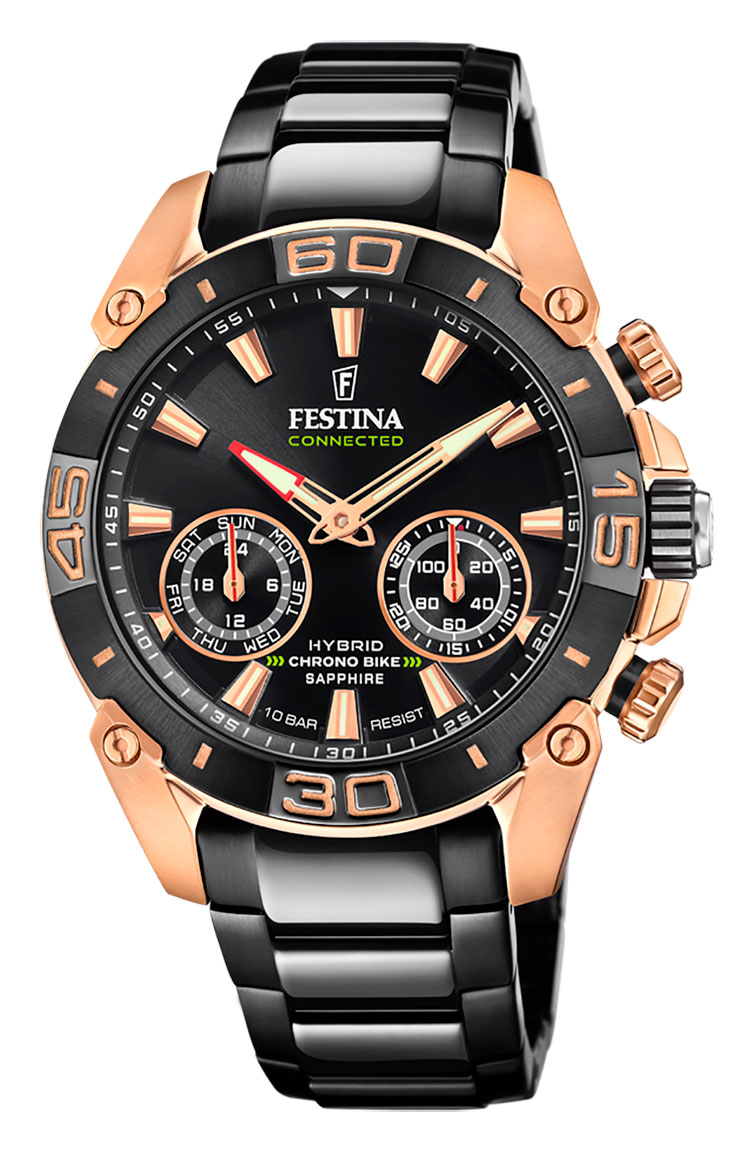 Yhdistä Festina Chrono Bike Connected 2021 F20548/1 -hybridikello älypuhelimeesi ja saa käyttöösi lukuisia eri toimintoja! F20548/1 -rannekello on aktiivisen liikkujan ystävä; seuraa omaa aktiivisuuttasi ja tavoitteita eri ominaisuuksilla, kuten ajastimella, askelmittarilla, ja aseta oma päivittäinen liikunta tavoitteesi.