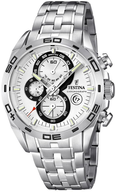 Festina Chronograph F16654/1. Kellon rungon leveys on 44mm ja rannekkeen leveys on 20mm. Kellossa ajanotto sekä päivyri. Festina kelloille myönnetään 2 vuoden takuu. Kello toimitetaan valmistajan alkuperäisessä rasiassa.