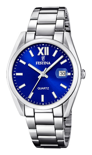Festina Classic gents F20683/4 on klassinen miesten rannekello japanilaisella Miyota 2115-koneistolla ja värikkäällä kellotaululla, joka sopii täydentämään hienosti arkipäivän asustusta. Kellossa on sininen kellotaulu päivyrillä ja selkeät viivaindeksit. Luminoidut osoittimet ja indeksit takaavat, että näet lukea ajan pimeässäkin. Rungon leveys on 40 mm ja paksuus 9 mm. Ruostumattomasta teräksestä valmistetun rannekkeen pituus on 145 - 210 mm ja leveys kiinnityskohdasta 20,95 mm. Festina F20683/4 kellon vesitiiveysluokitus on 50m / 5atm eli se on rajoitetusti vesitiivis (uintia ei suositella).