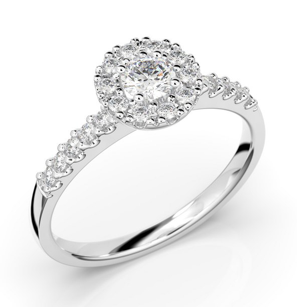 Festive Annabella 599-038-VK -timanttisormus on ajaton ja näyttävä valinta. Sormuksessa on herkkä kukkamainen halo-istutus, jonka keskiötä koristaa 0,18 karaatin kirkas timantti. Suurempaa kiveä reunustaa edelleen 10 kappaletta 0,01 karaatin briljanttihiottua timanttia, ja istutus jatkuu edelleen 10:nen 0,001 karaatin timantin muodossa sormuksen rungossa täydellisen säihkeen takaamiseksi. Kukkamaisen ilmeen viimeistelee reunuksiin asetetut kiinnityskynnet. Sormuksen rungon paksuus on 1,9 mm, ja kivi-istutuksen kohdalla halkaisija on 7,3 mm.