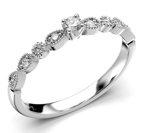 Kotimainen Festive Astrid sivukivellinen timanttisormus 648-013-VK on sadunomainen ja romanttinen valinta. Sormusta koristaa milgrain-koristelu ja suurempi 0,05 karaatin timantti, jota reunustaa kahdeksan 0,01 karaatin kiveä. Huolellisesti flakkasormuksen pintaan lisätyt jalokivet on hiottu perinteisellä briljantti-hionnalla, joka korostaa timanttien kirkkautta ja loistoa.