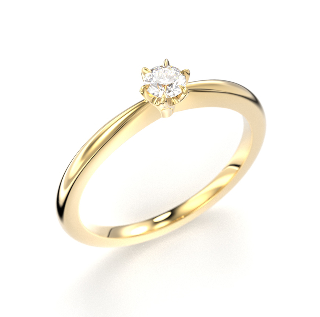 Yksikivinen Festive Classic 0,10 ct -timanttisormus on ajattoman tyylikäs ja klassinen valinta. Briljanttihiottu timantti saa loistaa yksinään, korostaen sormuksen hillittyä ja eleganttia muotoilua. Sormus on valmistettu 14 k keltakullasta ja siinä on yksi timantti, jonka paino on 0,10 ct.