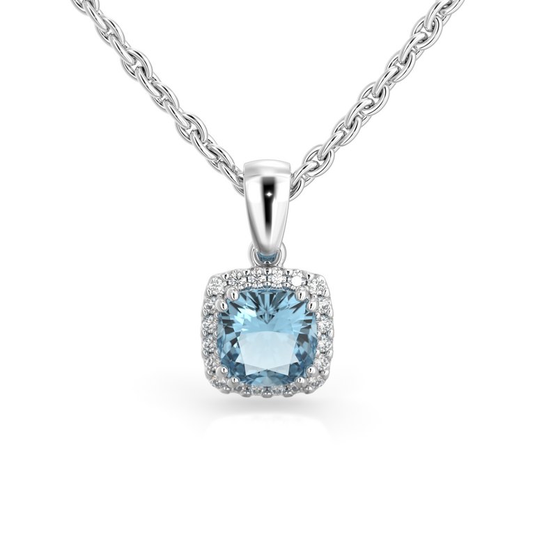 Festive Elsa 592-090A-VK -akvamariinitimanttiriipuksessa on klassinen halo-istutus, jonka keskiössä on suuri vedensininen cushion-hiottu 0,80 karaatin akvamariini, ja akvamariinia reunustaa 20 pienempää 0,005 karaatin timanttia. Ainutlaatuisen ilmeen viimeistelee pisaranmuotoiset tuplakynnet, jolla akvamariini on kiinnitetty. Riipuksen koko on 8,3 x 8,3 mm.
