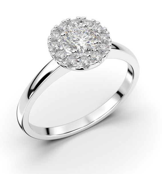 Festive Isabella 594-042-VK -timanttisormus ihastuttaa herkällä kukkamaisella halo-istutuksella, jonka keskiössä koreilee 0,30 karaatin kirkas timantti. Kukan terälehtinä toimii edelleen 12 kappaletta 0,01 karaatin briljanttihiottua timanttia, joiden loistoa korostaa flakkarungon sileä linja. Rungon paksuus on 1,9 mm, ja kivi-istutuksen kohdalla halkaisija on 9,2 mm.