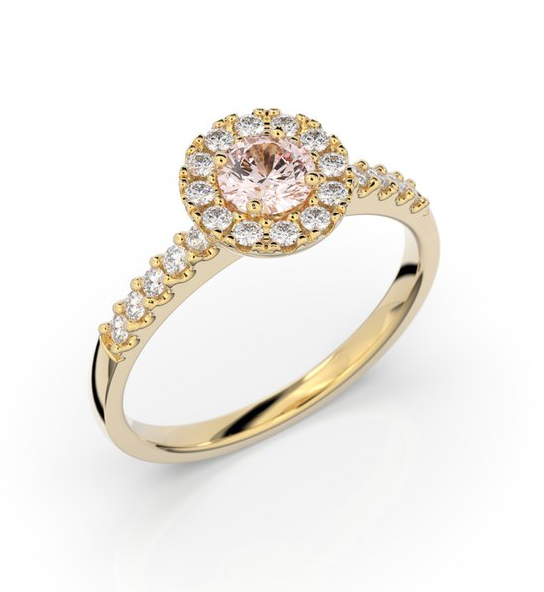 Festive Isabella 594-052M-KK -morganiittitimanttisormus ihastuttaa herkällä kukkamaisella halo-istutuksellaan ja kolmivärisellä ilmeellään. Sormuksen keskiössä koreilee 0,30 karaatin vaaleanpunainen morganiitti, joka säihkyy kauniisti keltakultaa vasten, ja kukan terälehtinä toimii edelleen 12 kappaletta 0,01 karaatin briljanttihiottua timanttia viimeistellen sormuksen ainutlaatuisen ilmeen. Timanttiupotus jatkuu edelleen 1,9 mm leveässä rungossa sisältäen vielä 10 briljanttihiottua timanttia taaten täydellisen loiston. Kivi-istutuksen halkaisija on 9,2 mm.