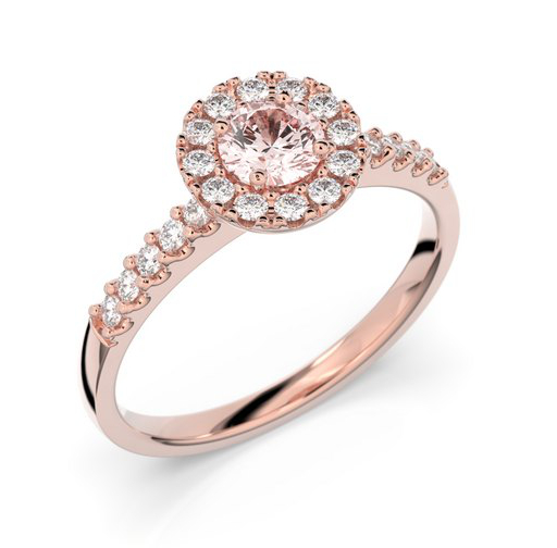 Festive Isabella 594-052M-PK -morganiittitimanttisormus ihastuttaa herkällä kukkamaisella halo-istutuksellaan ja kaksivärisellä ilmeellään. Sormuksen keskiössä koreilee 0,30 karaatin vaaleanpunainen morganiitti, joka säihkyy kauniisti ruusukultaa vasten, ja kukan terälehtinä toimii edelleen 12 kappaletta 0,01 karaatin briljanttihiottua timanttia viimeistellen sormuksen ainutlaatuisen ilmeen. Timanttiupotus jatkuu edelleen 1,9 mm leveässä rungossa sisältäen vielä 10 briljanttihiottua timanttia taaten täydellisen loiston. Kivi-istutuksen halkaisija on 9,2 mm.