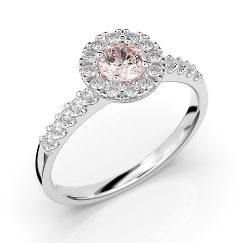 Festive Isabella 594-052M-VK -morganiittitimanttisormus ihastuttaa herkällä kukkamaisella halo-istutuksellaan ja kaksivärisellä ilmeellään. Sormuksen keskiössä koreilee 0,30 karaatin vaaleanpunainen morganiitti, joka säihkyy kauniisti valkokultaa vasten, ja kukan terälehtinä toimii edelleen 12 kappaletta 0,01 karaatin briljanttihiottua timanttia viimeistellen sormuksen ainutlaatuisen ilmeen. Timanttiupotus jatkuu edelleen 1,9 mm leveässä rungossa sisältäen vielä 10 briljanttihiottua timanttia taaten täydellisen loiston. Kivi-istutuksen halkaisija on 9,2 mm.