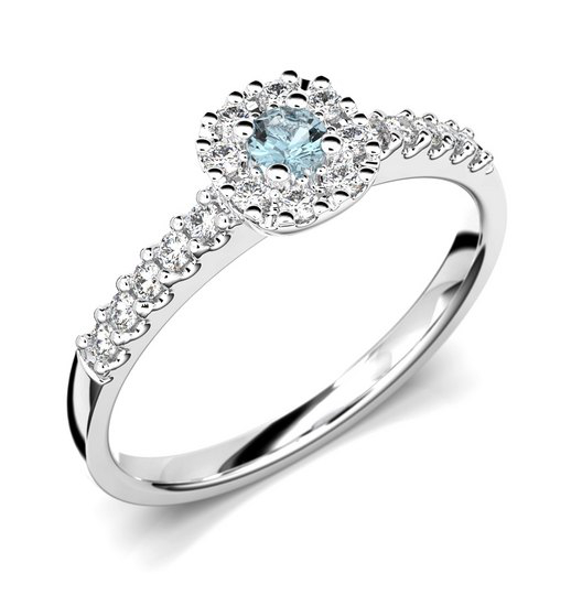 Kotimaista Festive Jasmin 561-025A-VK-akvamariini-halo-timanttisormusta koristaa useat erikokoiset briljanttihiotut timantit ja suuri vedensininen akvamariini antaen tälle valkokultaiselle flakkasormukselle todella ainutlaatuisen ilmeen. Ajattoman halo-istuksen, 0,07 karaatin akvamariinin, timanttien ja valkokullan yhdistelmä on vaalean viileä, ja kauniiden keskikivien lisäksi timanttiupotus jatkuu vielä sormuksen rungossa, johon on lisätty 10 briljanttihiottua Wesselton-timanttia. Halo-mallinen Jasmin on upea yksinään, ja se on helppo myös yhdistää myös muihin sormuksiin.