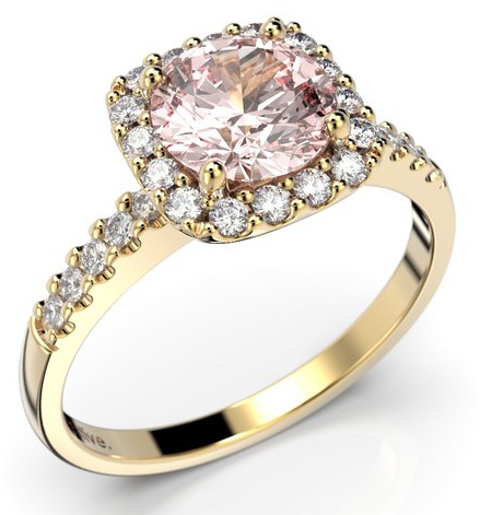 Kotimainen Festive Jennifer morganit halo-diamantring 639-126M-KK kuuluu Festiven klassiseen Jennifer-mallistoon, ja tätä upeaa keltakultaista sormusta koristaa suurempi 1,00 ct morganiitti ja 26 säihkyvää 0.01ct timanttia. Huolellisesti flakkasormuksen pintaan lisätyt jalokivet on hiottu perinteisellä briljantti-hionnalla, joka korostaa timanttien kirkkautta ja loistoa.